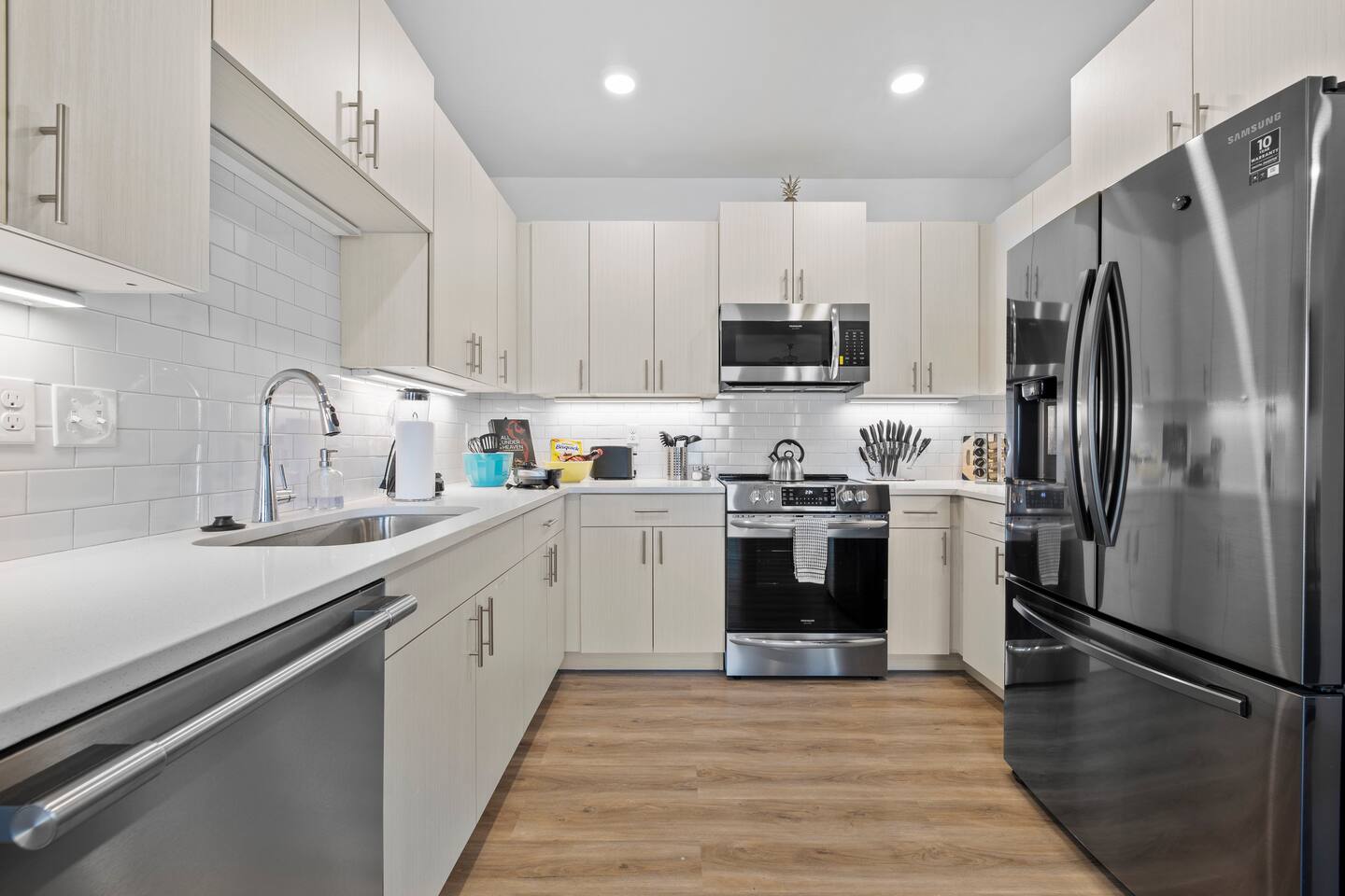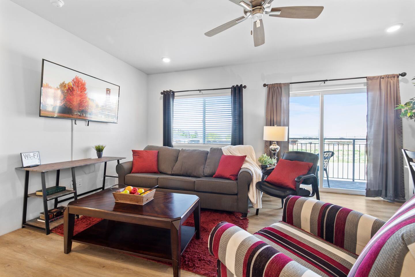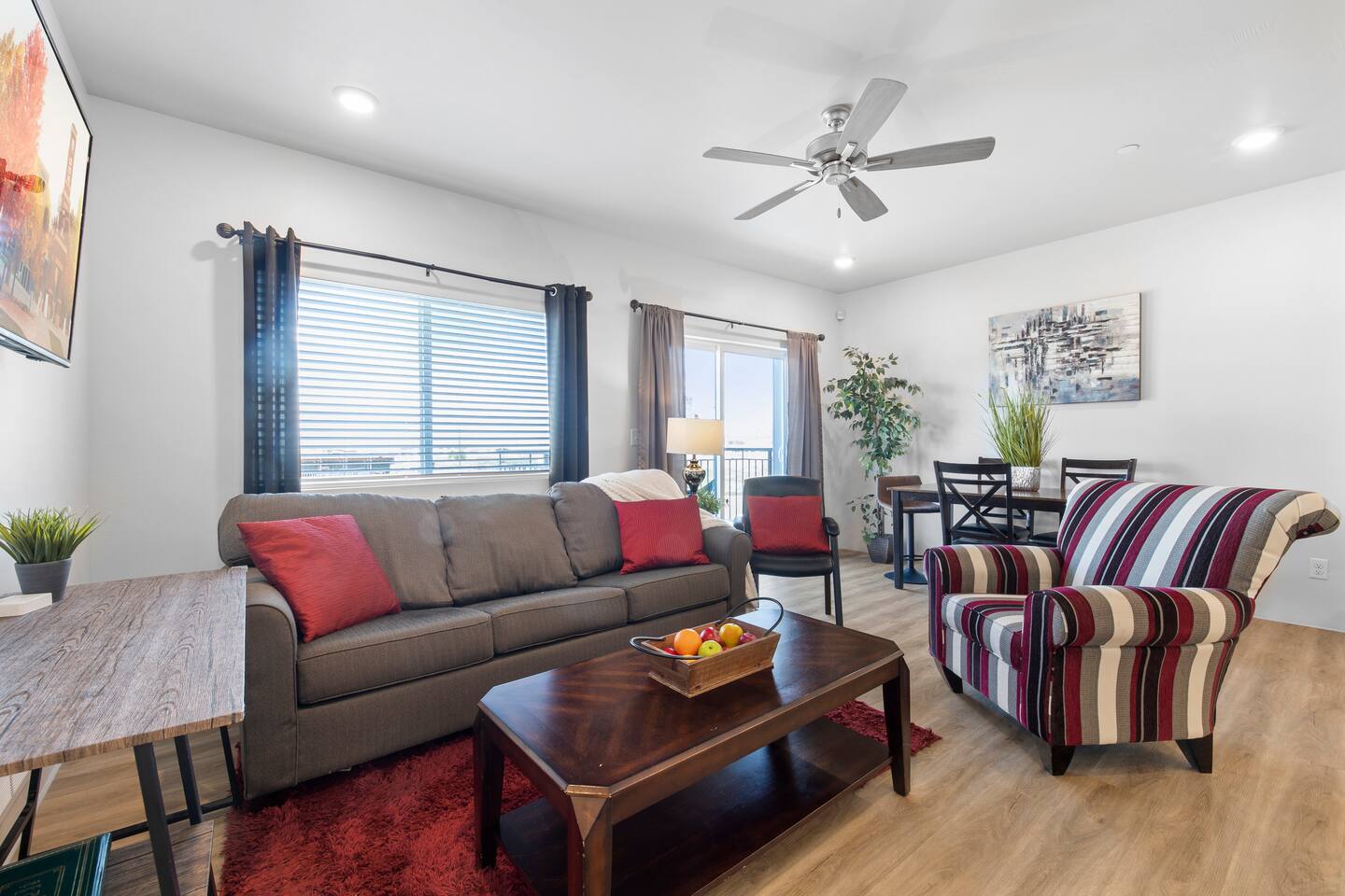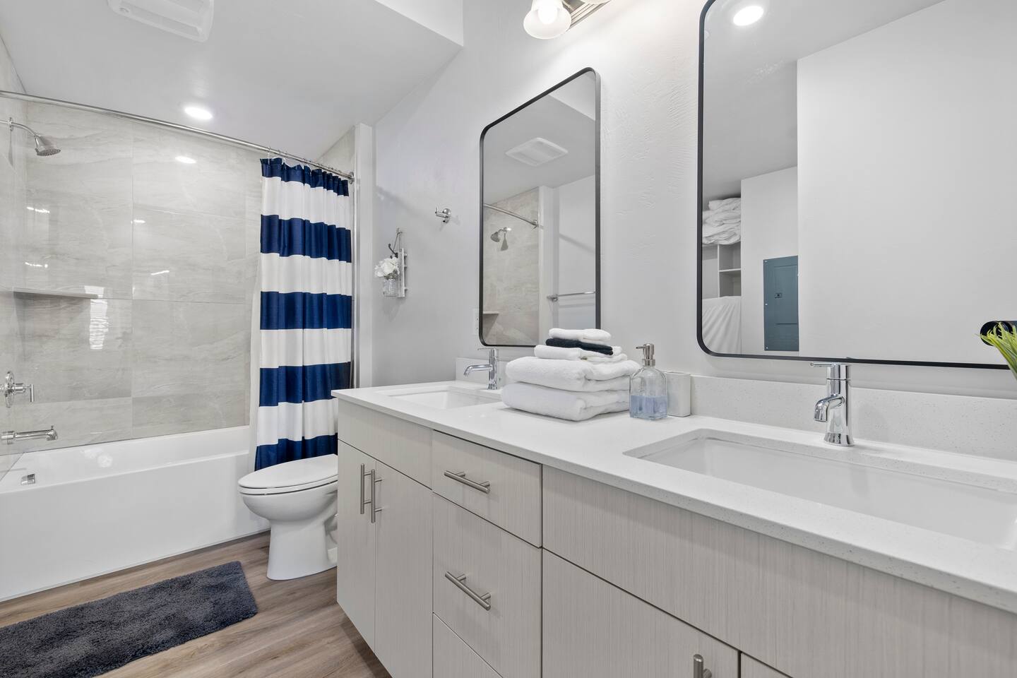 Welcome to Unparalleled Luxury with Exclusive All-Access Get ready for an exceptional experience where comfort and convenience take center stage. As our honored guest, you'll bask in a plethora of amenities and meticulously designed features that aim to enhance your stay and create lasting memories. Embark on your stay with exclusive entry to our exquisite apartment, a haven of style and comfort. The thoughtfully furnished living area exudes elegance, providing a warm and inviting atmosphere for your relaxation. Nestle into plush seating while immersing yourself in your favorite shows and movies on the 55” HDTV. The well-equipped kitchen is a paradise for culinary enthusiasts, boasting cutting-edge appliances, including stainless steel refrigerators, ovens, and dishwashers. Whether you're a gourmet chef or whipping up quick snacks, you'll appreciate the spacious counters and modern cooking utensils. Your personal sanctuary, the master bedroom, features a luxurious king-sized bed adorned with premium linens and pillows, ensuring a restful night's sleep. The attached half bath adds convenience and privacy, allowing you to freshen up without leaving your retreat. Our lavish full bathroom is adorned with opulent fixtures and amenities, from the roomy shower and tub to the luxurious side-by-side vanity with stone countertops and plush towels. Start your day with a rejuvenating shower or unwind with a soothing bath after a day of exploration. To enhance your stay, our apartment complex provides an array of shared amenities. The state-of-the-art fitness center lets you maintain your workout routine during your trip. For added convenience, private parking guarantees the safety and accessibility of your vehicle throughout your stay. Our prime location offers easy access to local attractions, shopping, and dining, allowing you to immerse yourself in the vibrant culture of the area. If you're a Pickleball or Tennis enthusiast, a park just two blocks away awaits your enjoyment. Whether your journey is for business or leisure, our all-access luxury apartment promises an unparalleled level of comfort, style, and convenience. We're committed to making your stay extraordinary and eagerly look forward to welcoming you to our distinguished accommodation.