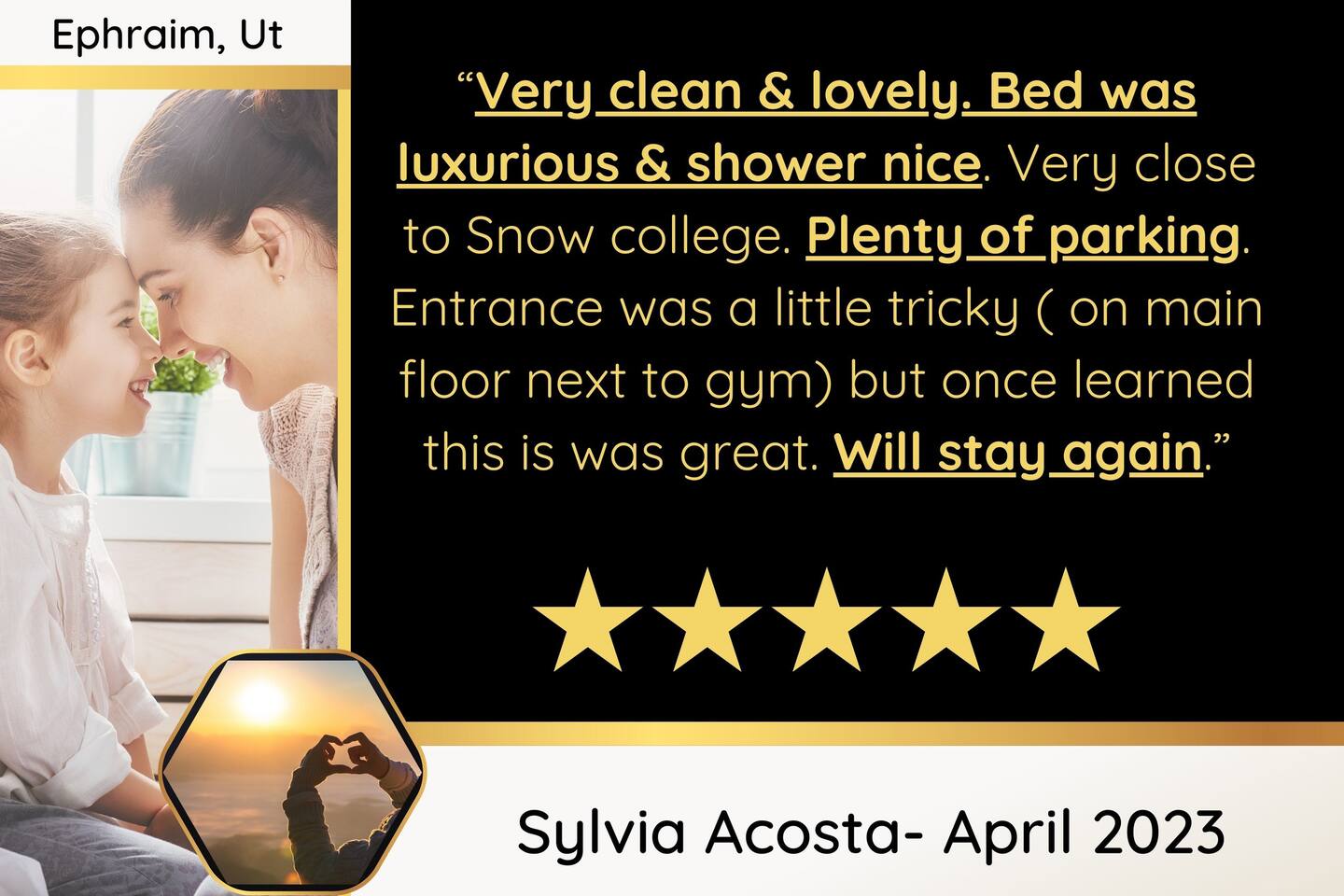 Step into a Delightfully Crafted Haven for Your Utmost Comfort Indulge in contemporary luxury with an open floor plan designed for relaxation and social gatherings. The fully equipped kitchen, adorned with sleek stainless steel appliances, caters to culinary enthusiasts, whether you're a seasoned chef or an aspiring cook. Experience tranquility in the king-sized bed of the master bedroom, while the plush memory foam sofa bed in the living area accommodates up to four guests for a restful night's sleep. Every visitor can enjoy their private space to unwind and rejuvenate. Enjoy the added convenience of secure private parking for the safety and accessibility of your vehicle throughout your stay. Safety and privacy are our top priorities, and our rental provides a serene atmosphere with access to our state-of-the-art Vivint security system. Explore downtown amenities, indulge in shopping and dining, and discover local attractions effortlessly, all while staying conveniently close to Snow College. Our meticulously kept property ensures an exceptional experience for our guests, and we eagerly look forward to welcoming you to our short-term rental.