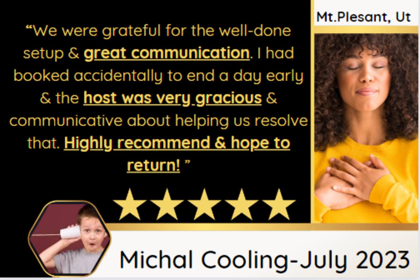 Unwind in the tranquility of simplicity and ease. ☀ Welcome to your ideal King Bedroom with a Spacious Closet ☀ Enjoy a completely Equipped Kitchen ☀ Washer and Dryer available for your use ☀ Effective 250Mbps WiFi to stay connected ☀ Free Trailer Parking for added convenience ☀ Don't forget to relax on the Queen Sleeper Sofa Explore the Charm of Local Treasures: Discover the allure of Maple Canyon Experience Contoy Arena Stroll through Main Street Shops in the Heart of 'Hub City'