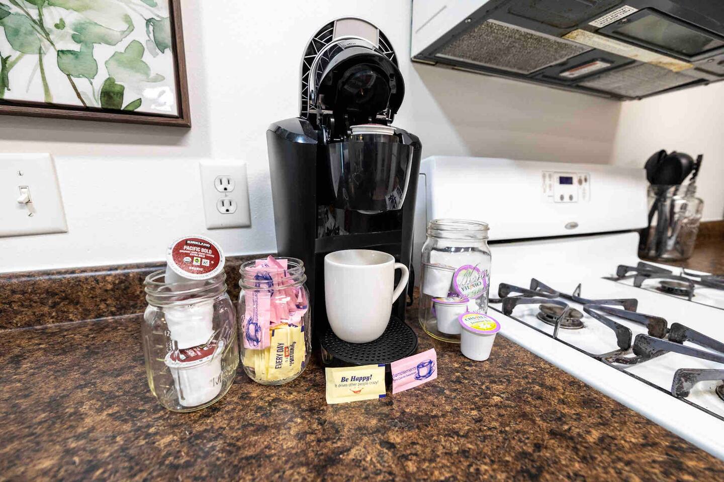 Enjoy Your Extended Work Trip in Our Inviting King Suite: Relax in our Spacious King Suite featuring a Full Kitchen Modern Amenities, including a convenient Dishwasher Unwind with an Instant Pot and Keurig, complete with Coffee Pods Get creative in the kitchen with the provided Waffle Iron for delicious homemade waffles.